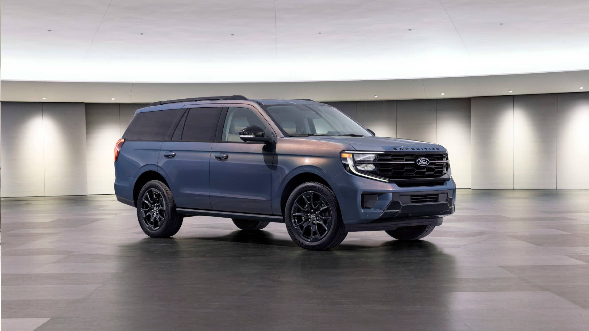 The new 30th Anniversary Appearance Package of the Expedition SUV features a special Blue Ember exterior paint sourced from the Mustang Dark Horse model. The 30th Anniversary Edition is based on the Stealth Appearance Package (Platinum variant), which features the blacked-out trim parts, including the front grille, roof, mirrors, tailgate, and alloys.